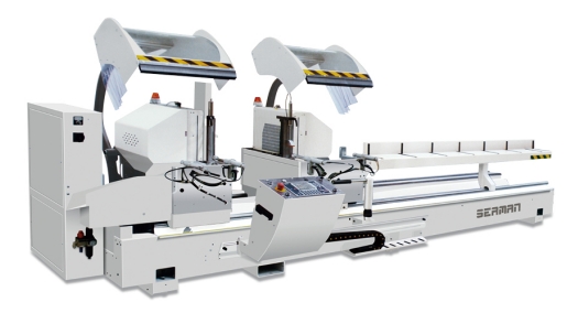 1、門窗框、扇、中梃的切割,常用設(shè)備有單頭鋸、雙頭鋸及全自動(dòng)加工生產(chǎn)線。